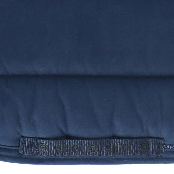 The lining is anti-static, moisture-regulating, moisture-wicking and extremely quick-drying, so your horse’s back stays as dry as possible. The saddle pad is proportionally filled with a synthetic filling for good shock absorption. The anatomical shape ensures that the saddle pad falls nicely on the back and stays in place. The anti-slip letters on the side and double girth loop ensure a stable position of the saddle. The ANKY® pads are known for their ability to remain perfectly in place, dry quickly and maintain their aesthetic qualities for a long time. The subtly shiny cord trim with silver stripe finishes this pad in a stylish way.