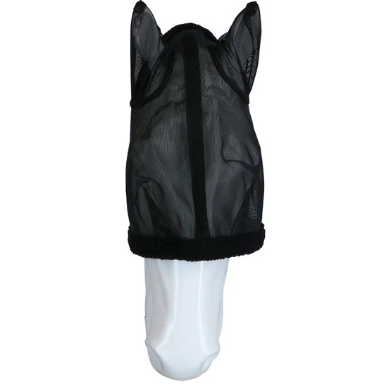 Fliegenmaske mit Ohren aus polyester mit Fleece und Gummi. Sehr gute Passform mit Klettverschluss.