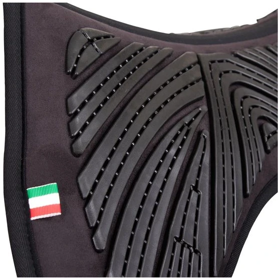 Diese anatomisch geformte Sattelunterlage aus antibakteriellem Polyester Synthetik-Veloursleder ist gefüllt mit Memory-Schaum. Die Oberseite der Unterlage ist mit einem Profil aus Soft-Gel ausgestattet. Die Kombination aus Soft-Gel und Memory-Schaum verteilt das Gewicht von Sattel und Reiter gleichmäβig über den Rücken des Pferdes, wodurch das Risiko von Druck auf den Rückenwirbeln und auf dem Widerrist reduziert wird. Memory-Schaum bietet hervorragende Stoßdämpfung. Das Material passt sich unter dem Einfluß der Körperwärme optimal dem Pferderücken an, wodurch Reibung verhindert wird. Das Gel stabilisiert den Sattel und gibt dem Pferd mehr Bewegungsfreiheit. Die Unterlage ist für alle Sattelarten geeignet und kann direkt auf dem Pferderücken benutzt werden oder zwischen Sattel und Schabracke. Waschbar bei 30°C.
