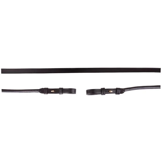 Kandarenzügel aus Leder mit Zaumhaken, 13 mm. Ohne Martingalschieber. Die Zügelenden sind aus rundgenähtem Leder.