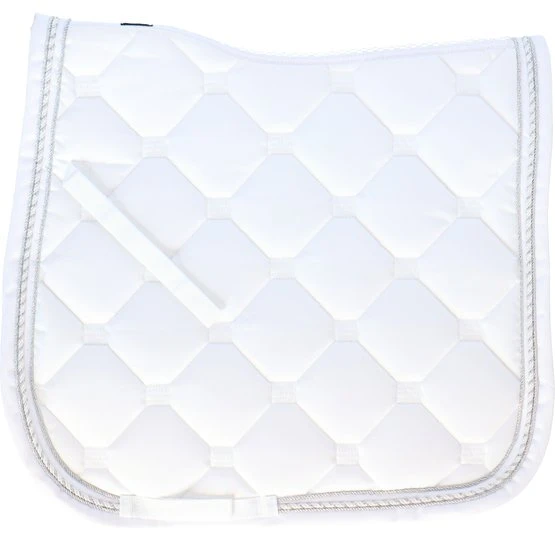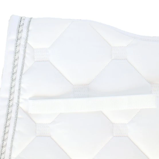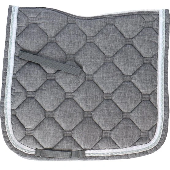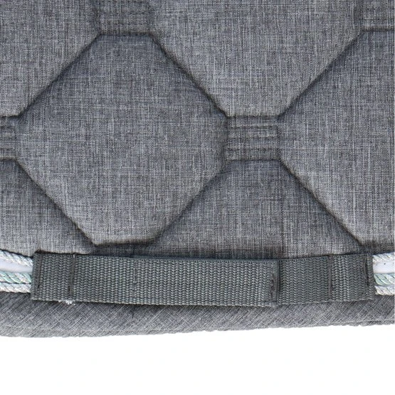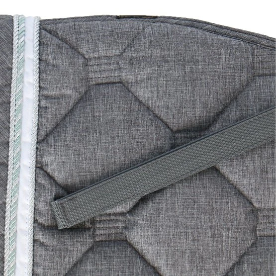 Stylische Schabracke aus Polycottongemisch mit einer Airflow-Rückennaht um die Luftzirkulation anzuregen. Die Schabracke hat eine 400 g Füllung, 8 mm Schaumpolster und ein Ciba behandeltes (feuchtigkeitsregulierendes) Polyester-Airflow-Futter. Es hat einen Einfass aus Airflow-Polyester und eine 3-reihige Silberkordel. Gurtstrippen- und Sattelgurtbefestigung mit Kletverschluss.