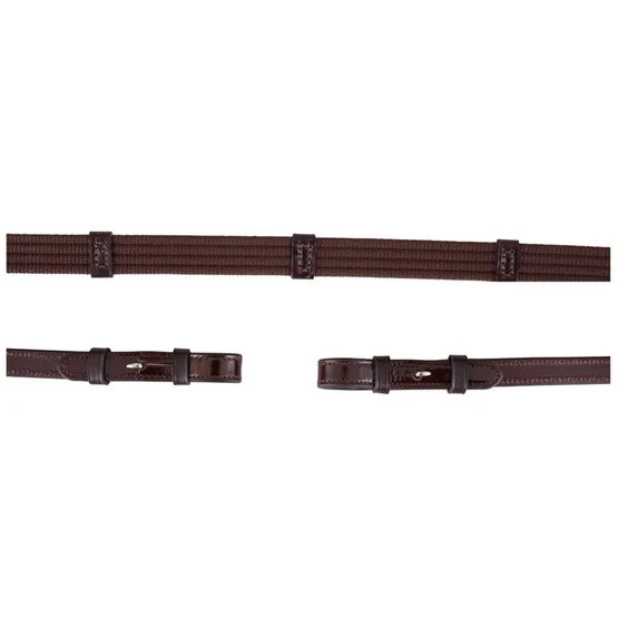 Gurtzügel mit Lacklederenden, Stegen, Zaumhaken und runder Schnalle, 19 mm.
