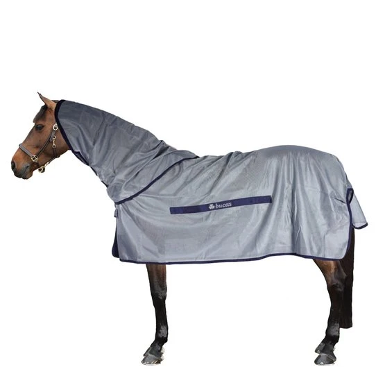 Die Bucas Buzz-Off mit losem Hals ist eine Fliegendecke, hergestellt aus einem feinmaschigen, UV-beständigen Stoff. Dieser Stoff sorgt für eine gute Luftzirkulation. Der abnehmbare Hals- und Bauchlappen bietet dem Pferd den ultimativen Schutz.