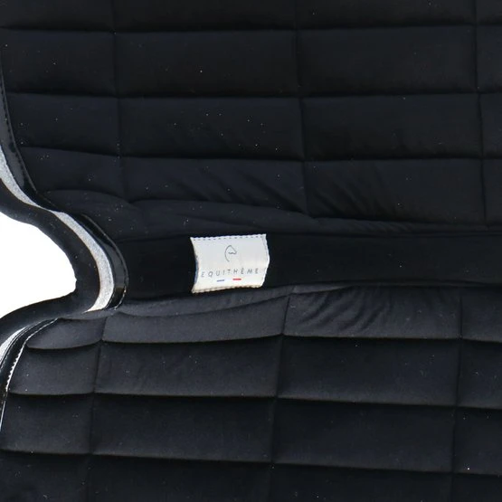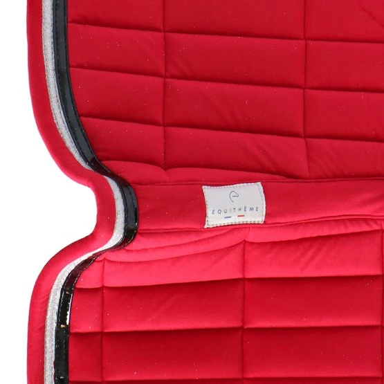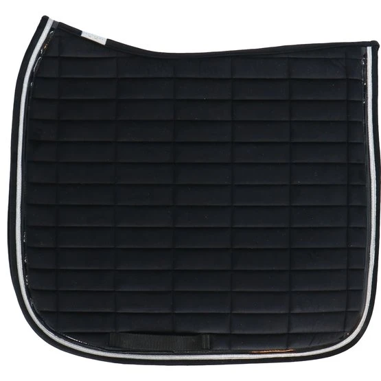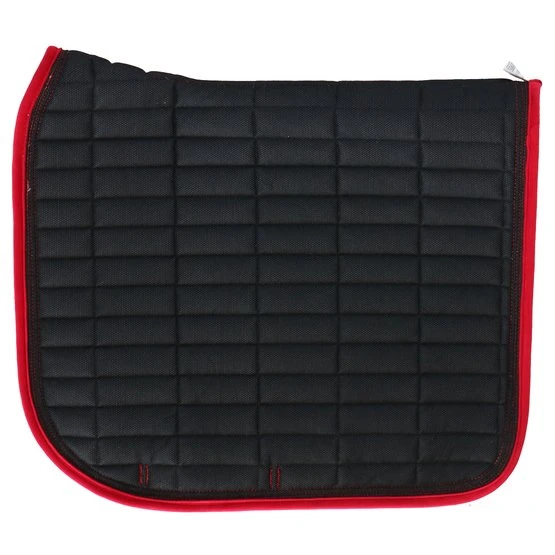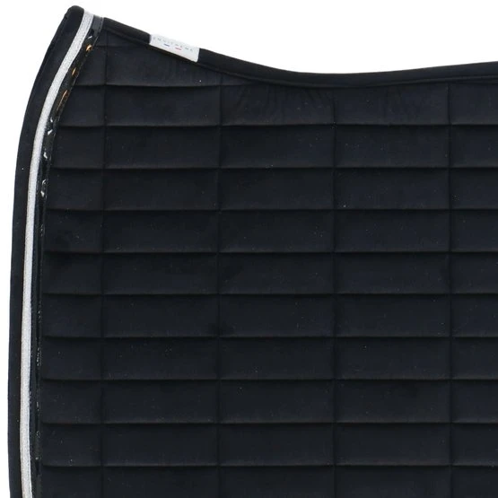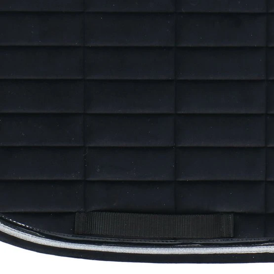 Sattelkissen mit Samteffekt aus 100% Polyester mit rechteckigen Nähten. Gefüttert mit 10 mm Schaum und Polyfill 250 g / m². Mit Doppelrohrleitungen verziert. Das Mesh-Futter macht das Sattelkissen sehr atmungsaktiv.
