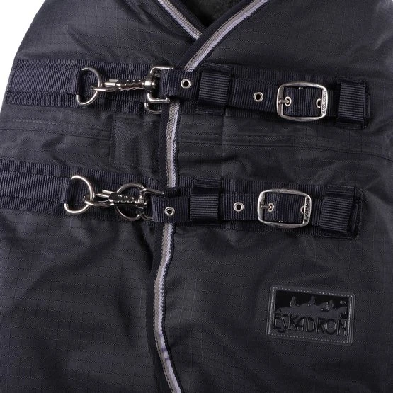 Das wasserdichte und atmungsaktive Ripstop-Obermaterial macht diese Decke zu einem echten Allrounder für Weide, Fahrerlager und Transport. Der Zwickel bietet die nötige Bewegungsfreiheit und die Kreuzgurte, die Drei-Wege-Verstellmöglichkeit vorne, die verstellbaren Beingurte und ein Heckgurt sorgen für einen sicheren Sitz. Dieses Modell wird in vier Varianten für unterschiedliche Wetterbedingungen angeboten: ein leichtes Baumwollfutter, ein angenehmes Fleecefutter, eine mittelschwere Wärmefüllung von 150 g und eine schwere Wärmefüllung von 300 g.