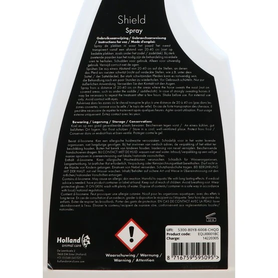 Sprühen Sie aus einem Abstand von 20-40 cm Auf die Stellen, an denen das Pferd am meisten schwitzt (nicht auf verdeckte Stellen, wie z.B. unter dem Sattel/der Satteldecke). Bei stark schwitzenden Pferden kann es notwendig sein, die Behandlung nach ein paar Stunden zu wiederholen. Vor Gebrauch schütteln. Nur zur äußerlichen Anwendung. Vermeiden Sie den Kontakt mit den Augen.