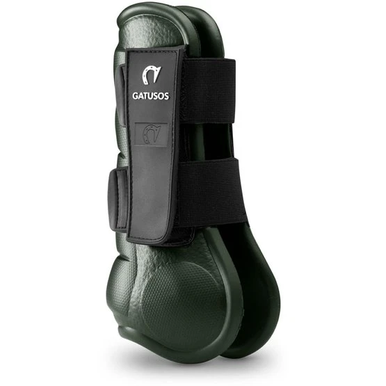 Gatusos Vordersehnenschoner DELUXE-Modell. Paar professionelle Frontprotektoren aus innovativem, patentiertem Material EVA GUMFLY (Ethylenvinylacetat). Hergestellt aus einem einzigen Stück antibakteriellem, stoßdämpfendem Material, daher nahtlos, mit einer anatomischen Schale für eine hervorragende Passform und mit einem extra widerstandsfähigen Doppelklettverschluss. Dank des speziellen Materials sind sie leicht zu waschen und zu trocknen, sehr widerstandsfähig und langlebig.