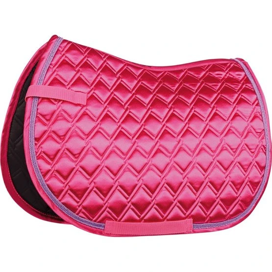 Satin-Schabracke mit luxuriöser 3-facher Zierkordel rundum. Ausgestattet mit Gurt- und Sattelschlaufen. 100% Polyester.