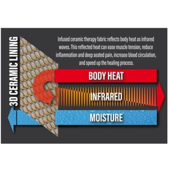 Sattelkissen mit „3D Keramik“ Futter. Dieses Material reflektiert die Körperwärme als Infrarotwellen. Diese reflektierte Wärme kann Muskelverspannungen und (beginnende) Entzündungen reduzieren, die Durchblutung verbessern und dadurch Heilungsprozesse fördern. Dieses Sattelkissen zeichnet sich durch eine hervorragende Passform unter dem Sattel und auf dem Pferderücken aus. Diagonal mit Umfang und Sattelschlaufen genäht. Eine Eigenschaft des Innenfutters ist, dass es Pillen kann, die keinen negativen Einfluss auf die Funktion des Sattelkissens / der Infrarotwellen haben. Material: Außen: 100% Baumwolltwill Füllung: 700 g Polyfilz und 5 mm Schaum, Futter: Polyester + Keramik