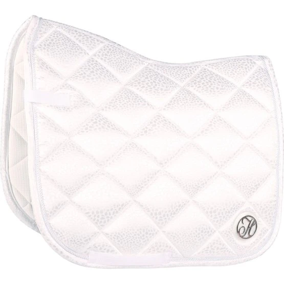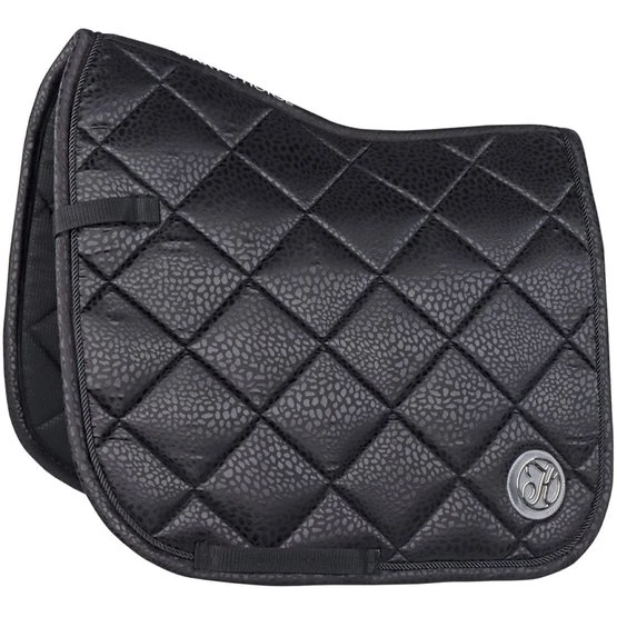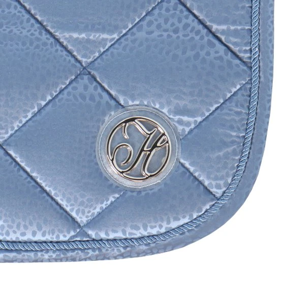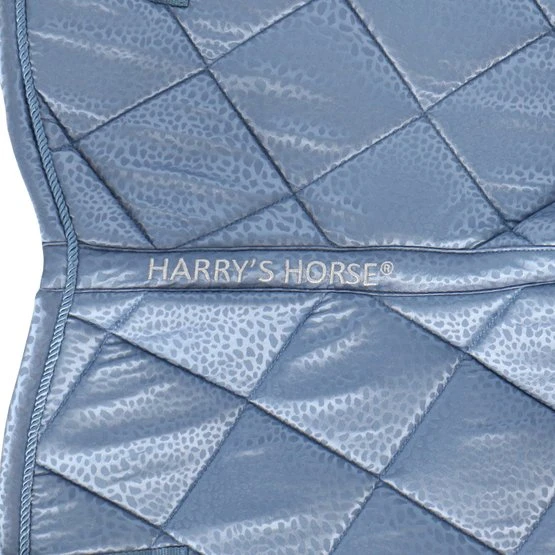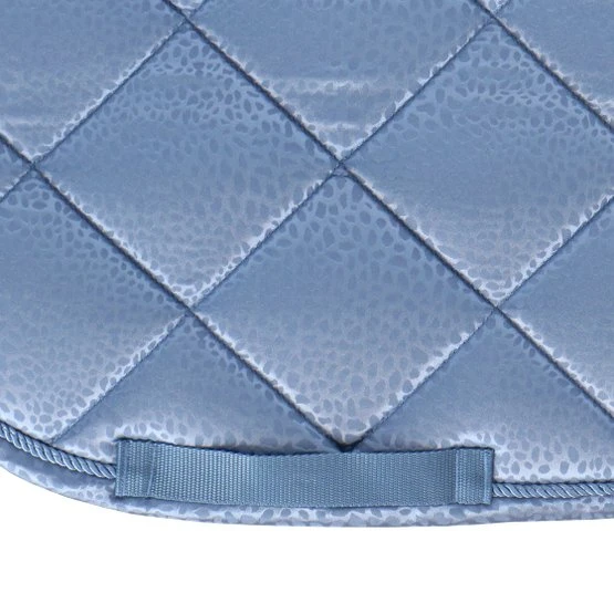 Schabracke mit schickem Ton-Ton-Leopardenmuster. Ausgestattet mit einer dekorativen Kordel und metallischen Paspeln. Ausgestattet mit einer Gurtschlaufe und Klettverschluss an den Sattelschlaufen.