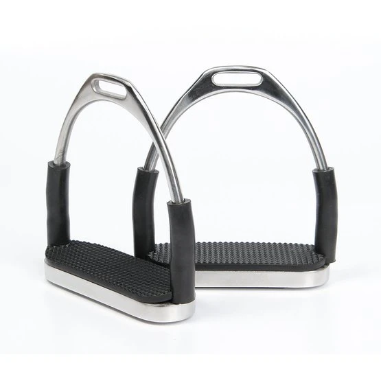 Fillis-Halterungen Aus hochwertigem Edelstahl Bietet Komfort und Stabilität für Pferd und Reiter. inkl. gerader, elastischer Sohle Flexible Version mit seitlichem Verbindungsglied, wodurch die Halterung flexibel ist. Dies macht es leicht für einen Sturz. Die Bandage passt sich der natürlichen Bewegung des Fußes an, so dass Beschwerden an Muskeln und Knien deutlich reduziert werden. Optimale Unterstützung dank breitem Fußbett.