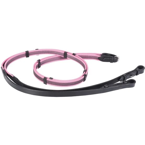 Supergrip-Zügel mit Stoppern, Leder mit Gurtband in lustigen Farben.