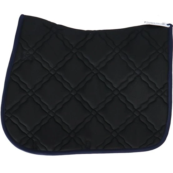 Die Schabracke „Bologna“ hat eine luxuriöse Ausstrahlung und besteht aus 100% Polyester mit einer anatomischen Passform. Durch das Material wird Feuchtigkeit schnell aufgenommen. An den Schlaufen befinden sich Klettverschlüsse, die vor einem Waschgang geschlossen werden sollten.