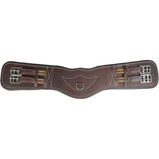 | Deluxe-Dressursattelgurt aus hochwertigem Leder. Mit elastischen Teilen für zusätzlichen Komfort beim Anziehen des Gurtes.