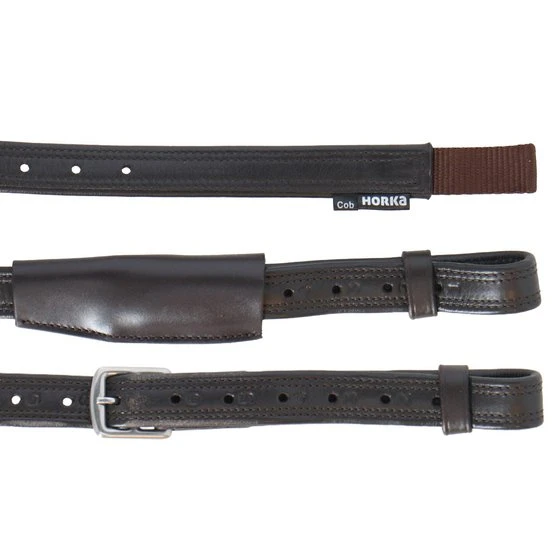 Steigbügelleder aus Leder mit Nylonkern. Produktspezifikationen: Einzelriemen mit flacher Nylonschlaufe zur Befestigung am Steigbügel SS-Schnalle mit Lederbezug Pony 50 CM Full 70 CM