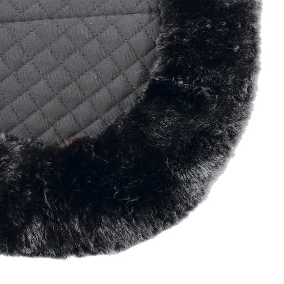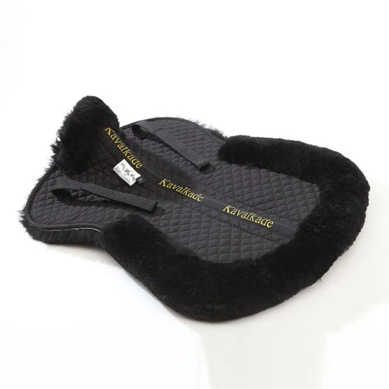 Schabracke aus medizinischem Lammleder, ohne Einsätze, der Zwischenkanal ist leicht mit Fell gefüttert. Das Pad besteht aus antiallergischem Fell, speziell für Pferde mit empfindlicher Haut. Außerdem fördert das Lammfell die Durchblutung der Muskulatur von Pferden. Durch seine natürliche Entstehung massiert das Fell beim Reiten den Rücken des Pferdes. Unter medizinischem Lammfell entwickelt sich keine Hitze, was eine Überhitzung verhindert.