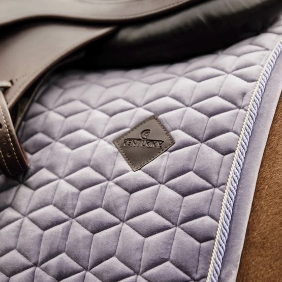 Super stylische und stilvolle Schabracke aus Samt mit doppelt gedrehter Bordüre. Die Samtschabracke ist für das Springendesigned und bietet hervorragende Polsterung zwischen dem Rücken des Pferdes und dem Sattel und schützt gleichzeitig vor Verspannungen. Die Schabrackehat keine lästigen Schlaufen zur Befestigung am Sattel, sondern nur einen Nylonriemen für den Gurt. Das dezente Logo aus Kunstleder ist immer an einer zentralen, etwas höheren Stelle platziert, so dass bei Bedarf immer Platz für die Bestickung mit ihrem eigenen Logo verfügbar ist. Maschinenwaschbar bei 30°, kein Trockner.