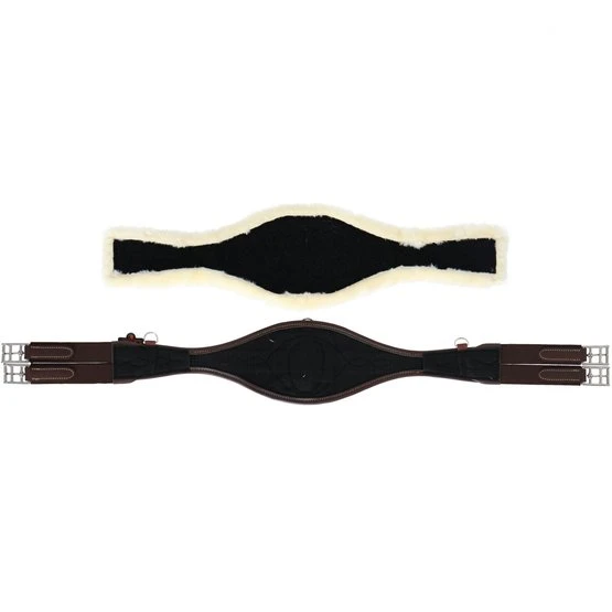 Speziell geformtund entworfen, um der natürlichen Bewegung des Pferdes zu folgen, bietet der Gurt Anatomic mit Schaffell sowohl Komfort als auch Freiheit. Er verschafft den Schultern und Ellbogen des Pferdes Freiheit, so dass es besser atmen kann, während das Risiko von Verletzungen minimiert wird. Der Gurt hat ein schützendes Inneres aus EVA, Elastikeinsätze an beiden Enden, um Druck gleichmäßig zu verteilen, drei D-Ringe, um (Hilfs-)Zügel anzubringen sowie eine Schnalle, um ein Martingal am Gurt zu befestigen. Die Gummizüge sind sehr stabil und bleiben es auch, da es insgesamt drei und diese doppelt gemacht sind. Das künstliche Schaffell bietet eine ausgezeichnete Polsterung für die Haut unddas Kunstleder kann bei 30°Cin der Waschmaschine (kein Trockner) gewaschen werden. Darüber hinaus nimmt das Kunstleder keinen Schmutz, Schweiß oder Wasser auf und ist daher sehr haltbar! Ebenfalls ändert es auch nicht die Farbe und ist nur sehr schwerzu beschädigen.