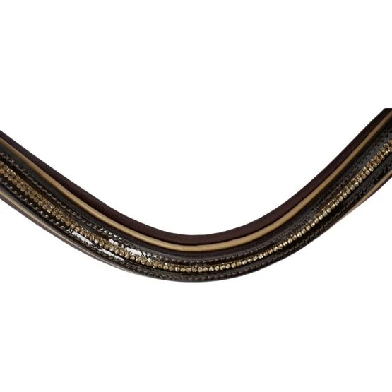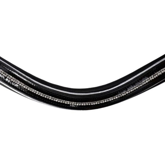 englisch kombiniertes Reithalfter • anatomisch geformtes Stirnband mit zweireihigem Strasstein-Motiv sowie attraktiver Paspelierung • weiche Polsterung auf Stirn-, Nasen- und Genickriemen, sowie Kinnpad sorgt für hohen Tragekomfort • Stirn- und Nasenriemen in edler Lack-Optik • inkl. Gurtzügel • mit rostfreien Beschlägen