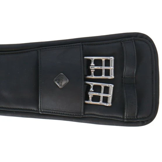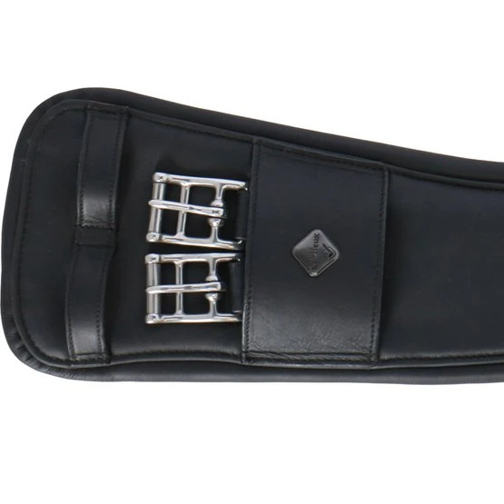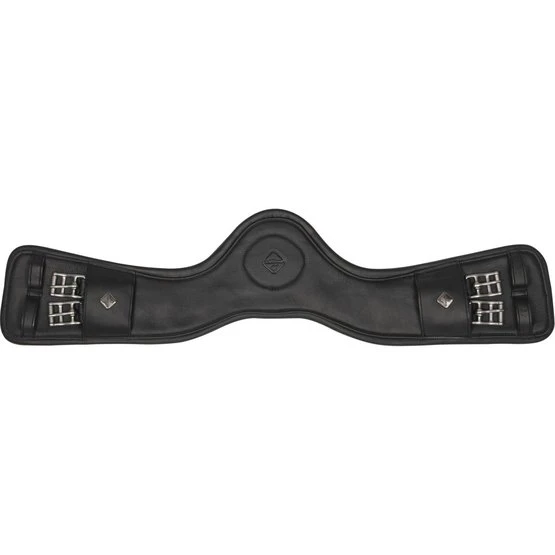 Anatomischer Dressurgurt für maximalen Komfort. Die Gelpolsterung an den Gurtkanten ermöglicht eine freie Bewegung der Muskeln ohne Einschränkung und das Gefühl der Einschränkung. Die Kombination aus dynamischem Gel und ultraweichem Leder absorbiert und verteilt den Druck gleichmäßig über die Gurtoberfläche. Vorgeformte Form und Aussparung für maximale Freiheit und Platz hinter dem Ellbogen. Ermöglicht die Bewegung der Vorderbeine und kann die Schrittlänge verbessern. Verbessert die Sattelstabilität und beseitigt Beschwerden und Reibung. Starke doppelte elastische Schnallen an beiden Enden minimieren die Dehnung und bieten gleichzeitig ein gewisses Maß an Flexibilität.