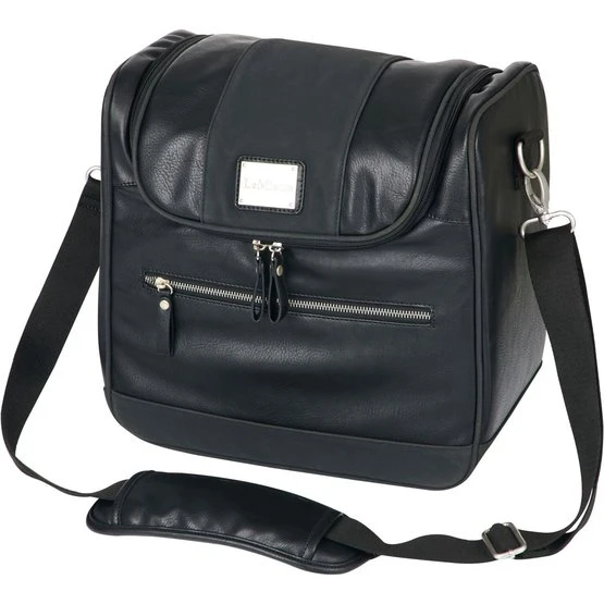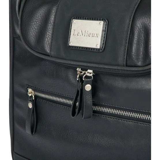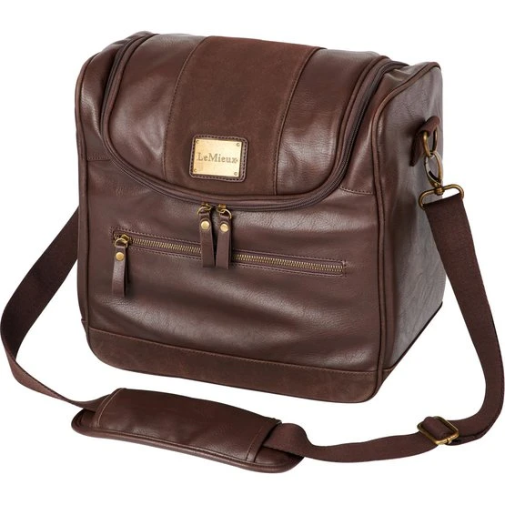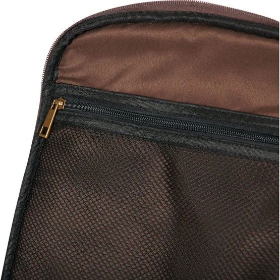 Elegante und stilvolle Pflegetasche aus PU-Leder mit strukturiertem Fach für Bürsten. Mit Details aus Wildlederimitat.