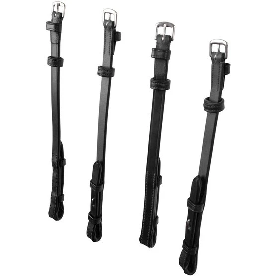 Set aus vier klassischen flachen schwarzen Backenstücken mit braunen Nähten. Die Backenstücke werden mit französischen Haken für einen sauberen Look am Gebiss befestigt. Montar Wangenstücke werden aus organisch gegerbtem Leder ohne den Einsatz von Chrom oder Chemikalien hergestellt, was Hautirritationen und Allergien für Ihr Pferd reduziert. Die Backenstücke sind ergonomisch gestaltet, um den Komfort des Pferdes zu erhöhen, während elegante Steppnähte und funktionale Details für einen modernen Stil sorgen. Montar Wangenstücke sind in verschiedenen Größen erhältlich, damit Sie Ihr Zaumzeug an die Größe Ihres Pferdes anpassen können. Diese Backenstücke sind einfach zu verstellen und passen zu unseren Montar Kandaren zB Normandie Doubel Bridle und allen anderen hochwertigen Trensen. Erhältlich in schwarzem und braunem Leder.