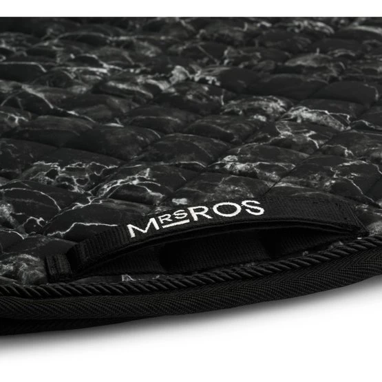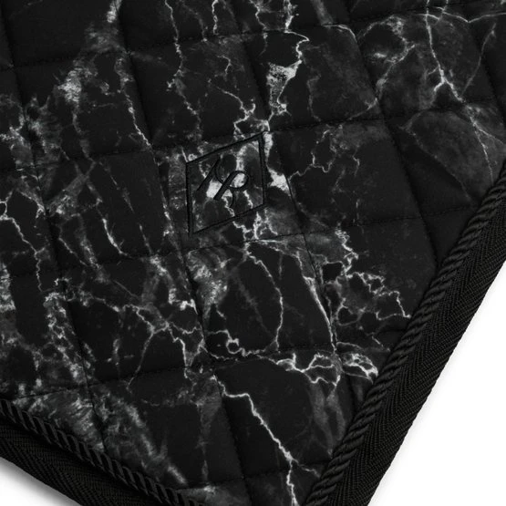Unsere Charmer Dressurschabracke ist mit unserem schicken marmorschwarzen Aufdruck und dem durchgehend aufgestickten Mrs. Ros-Logo versehen.