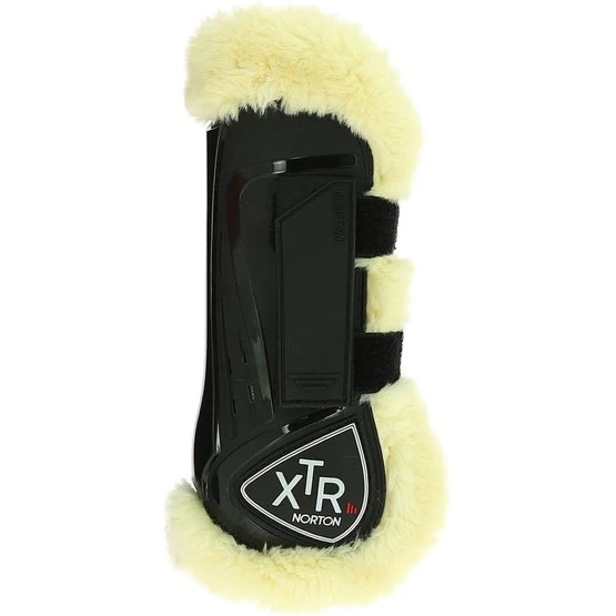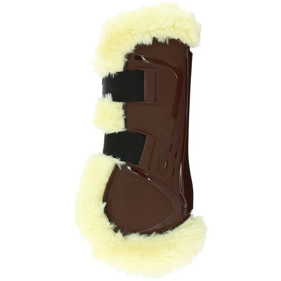 Offene Sehnenstiefel mit belüfteter Polyurethanschale, gefüttert mit synthetischem Schaffell aus 50% Acryl und 50% Polyester. Schließt mit Klettverschluss.