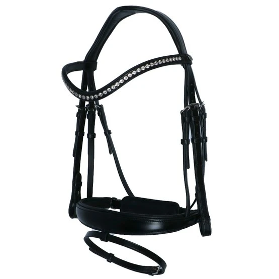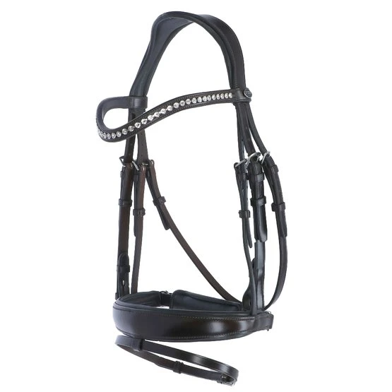Der attraktive Trensenzaum Atlas setzt neue Maßstäbe in Sachen Pferdefreundlichkeit. Das Genickstück und das Reithalfter Special mit kombiniertem Reithalfter sind anatomisch geformt und weich gepolstert. Das Ergebnis ist ein komfortabler, flach anliegender Trensenzaum, der effektiv Druck entlastet. Das gewellte Stirnband mit großen Premium-Kristallen in Clear Crystal fügt ein wunderschönes Funkeln hinzu.