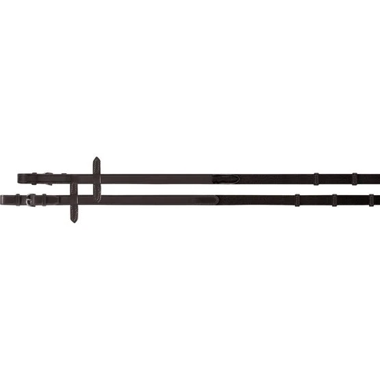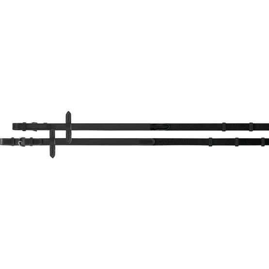 Klassische Gurtzügel mit doppelten Ledergriffen und praktischen Anschlägen.