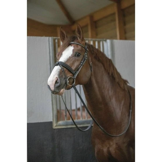 PENELOPE Trensenzaum mit breitem Nasenriemen und anatomischem Genickstück. Kein Druck auf die Halswirbelsäule, ultraweiche Polsterung des Genickstücks für optimale Druckverteilung. Extra breiter Nasenriemen für mehr Komfort. Diesen Trensezaum wird mit Zügeln verkauft. 100 % Rindsleder.