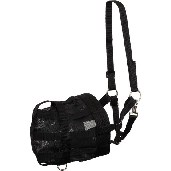 Diese robuste Sandmaske aus feinem Netz verhindert, dass Ihr Pferd Sand frisst. Die Innenseite der Maske ist am Rand mit weichem Neopren ausgekleidet, damit die Maske nicht scheuert. Die Maske ist für eine perfekte Passform verstellbar und lässt sich mithilfe des Karabinerhakens und des Klettverschlusses leicht öffnen und schließen. An der Unterseite befindet sich ein D-Ring zur Befestigung eines Führstricks.