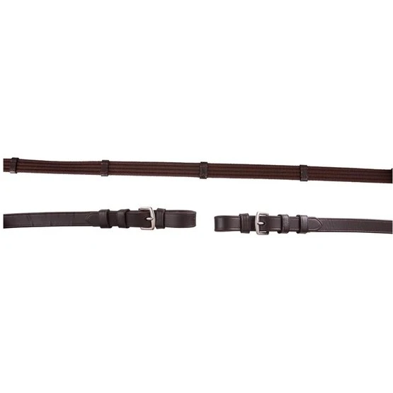 Gurtzügel (19 mm breit) mit Lederstegen und Martingalschiebern. Die Lederenden mit Edelstahlschnallen sind 16 mm breit.