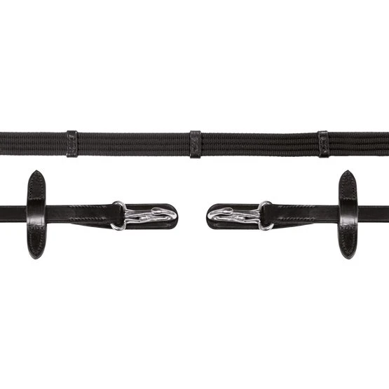 NEO GURTZÜGEL CLIP verfügt über einen Clipverschluss, der ein schnelles Ein- und Ausschnallen der Zügel aus dem Gebiss ermöglicht. In Kombination mit den vorhandenen Martingalstoppern ist es ein idealer Trainingszügel. Das 19 mm breite Gurtmaterial mit Lederstegen liegt gut in der Hand.