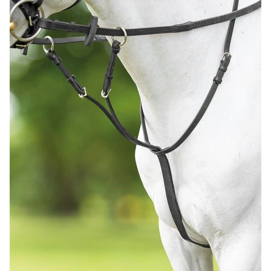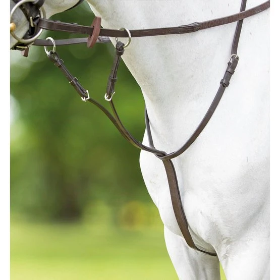 Aus Leder gefertigt und an Hals, Umfang und Martingalriemen verstellbar. Dieser Running Martingale passt zu jedem Velociti-Zaumzeug und verfügt über hochglänzende Edelstahlbeschläge.