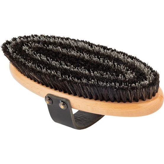 Mittelgroße Kardätsche vereint ein hervorragendes Putzergebnis mit einem wohltuenden Massageerlebnis für das Pferd. Die schräge Borstenstellung ermöglicht eine variable Handhabung und sorgt für eine maximale Reinigungswirkung. Beim Bürsten entgegen der Borstenstellung mit einer Reihe straffer Messingborsten werden selbst hartnäckigste Verkrustungen gelöst und die Rosshaare bester Qualität holen den Schmutz extrem aus der Tiefe. Beim Bürsten in die andere Richtung erzielt man einen schönen Glanz auf dem Fell. Ideal auch beim Fellwechsel