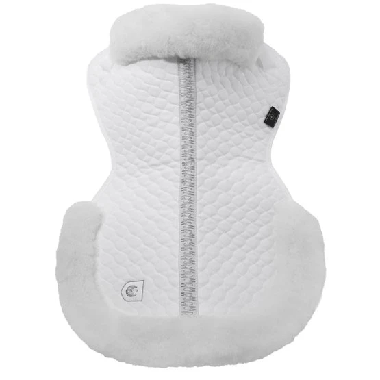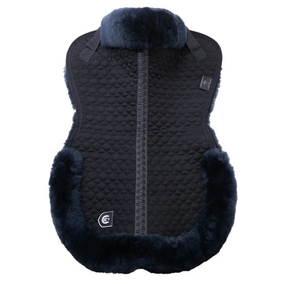 Das Sattelpad Standard ist mit durchgehendem Lammfell auf der Unterseite ausgestattet. Am Widerrist ist das Lammfell um die Kante herumgezogen und schützt an dieser empfindlichen Stelle. Vorne wird das Lammfell bis auf die Oberseite herumgezogen und dient als Sattelanlage. Der hintere Fellrand aus Lammfell fungiert als zusätzlicher Kantenschutz und schmückt optisch.