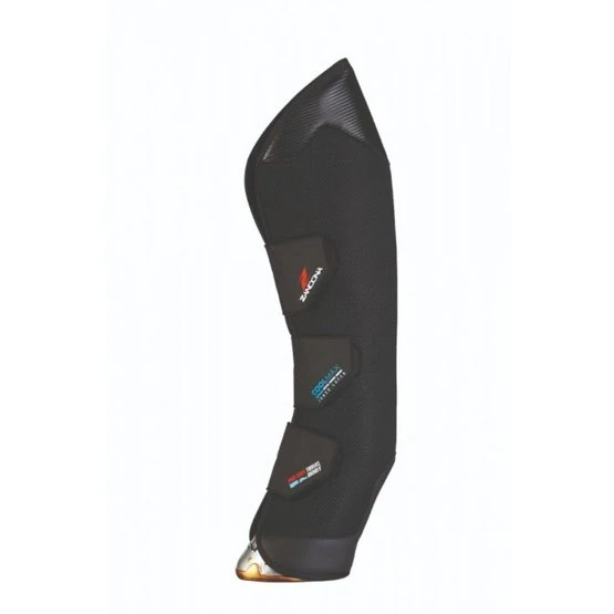 Die integrierten Hochleistungsprotektoren für das KNEE (Frontgamaschen) und den HOCK (Hintergamaschen) erhöhen die Sicherheit des Pferdes auf Reisen erheblich.